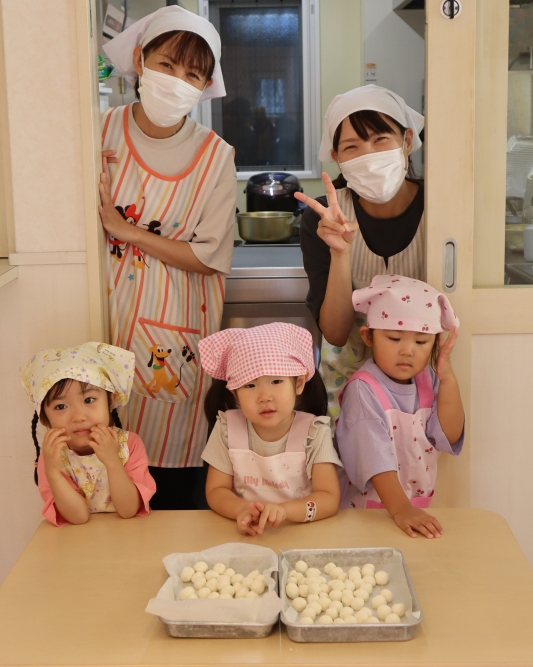 今年度はじめてのクッキングは、お月見だんごを作りました😊