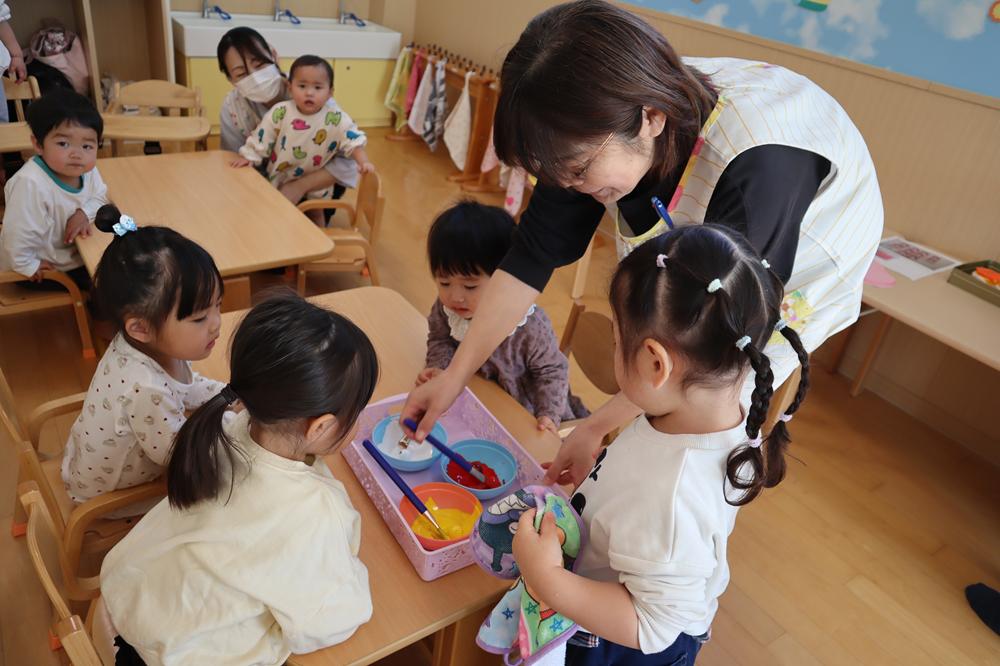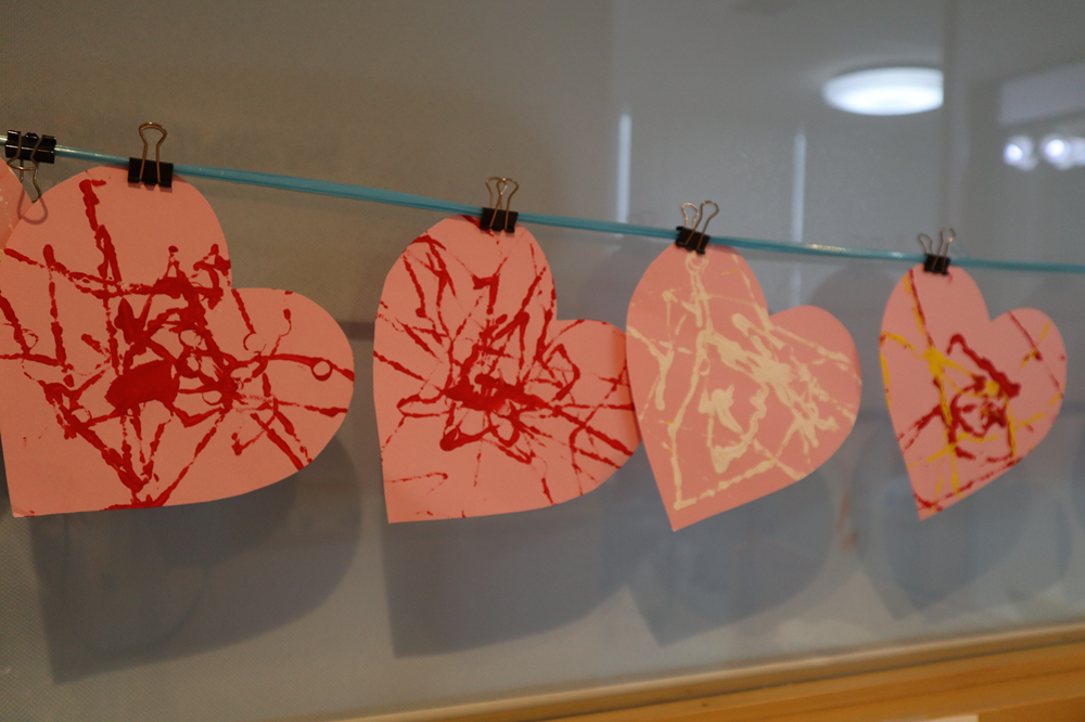 絵の具をつけたビー玉をころころ転がして模様を作りました😊